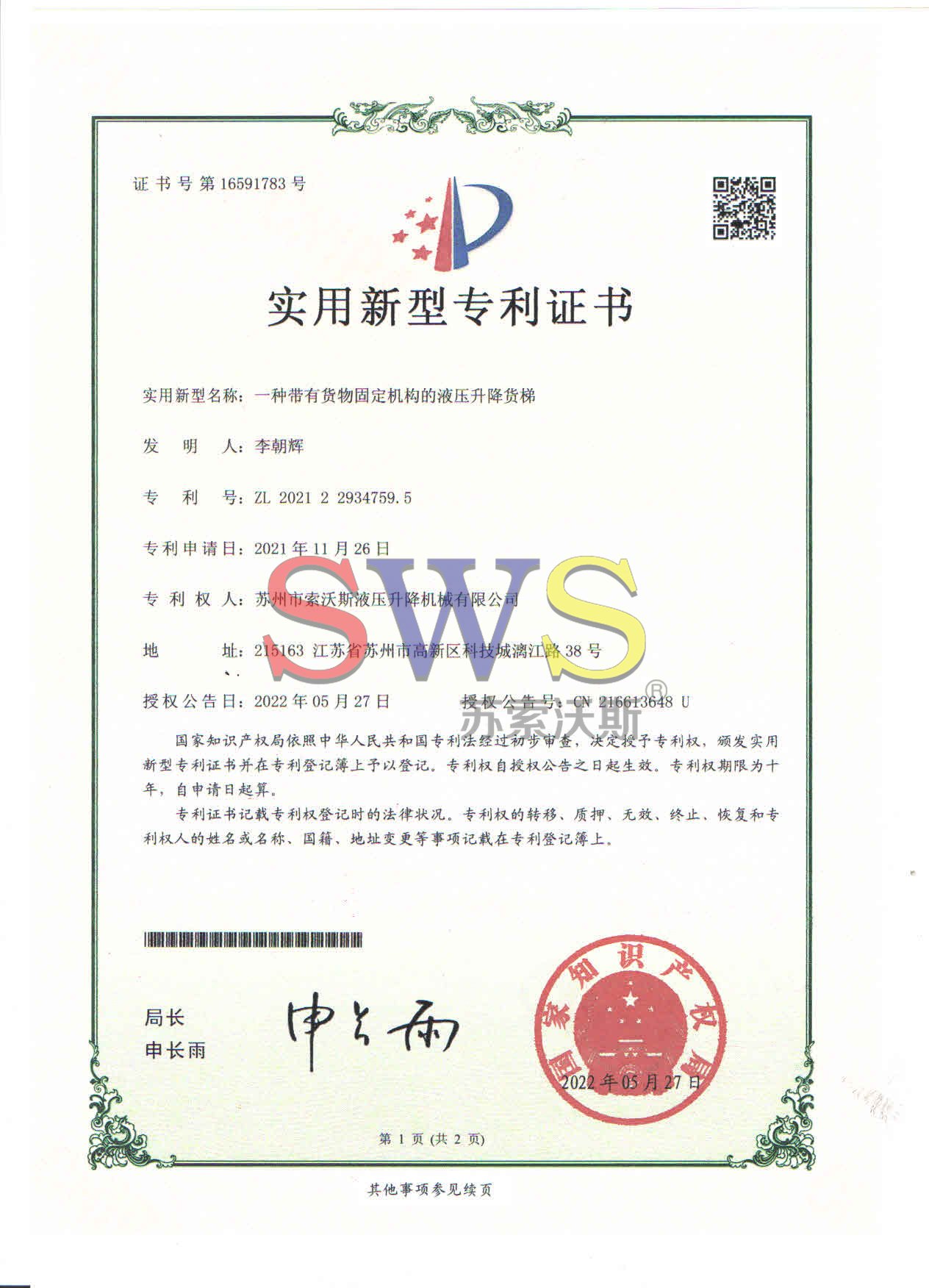 蘇州市索沃斯液壓升降機械有限公司